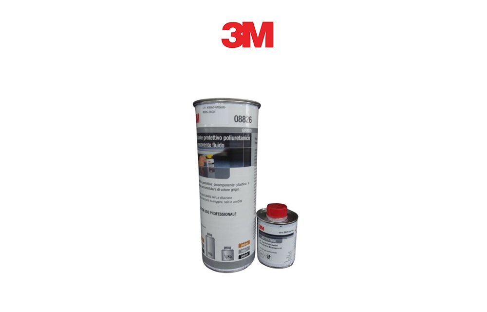 3M 08826 protettivo bicomponente a+b grigio 1kg - I sigillanti protettivi bicomponenti 3M? sono rivestimenti fluidi a base poliuretanica bicomponente catalizzata. Possono essere applicati con pennelloo a spruzzo. I sigillanti protettivi 3M? sono ideali per applicazioni su fascioni sottoporta, frontali e parti posteriori della carrozzeria. Grazie al loro utilizzo è possibile ripristinare l'aspettooriginale delle sigillature presenti su alcuni modelli di automobili, in particolare nelle giunzioni fra lamiere sovrapposte o nelle saldature di vani motore, bagagliai, abitacoli e passaruota. Una volta miscelati i due componenti, il prodotto può essere spruzzato utilizzando l'applicatore 3M? 08996. In alternativa, è possibile utilizzare il kit di spruzzatura 3M? 08987. Una volta asciutti, i sigillanti protettivi 3M? forniscono una rivestimento con ottime proprietà di insonorizzanti ed eccellente protezione contro la ruggin