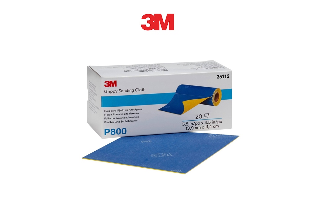 3M 51112 Foglio Grippy P800 20pz 139mmx114mm - I fogli abrasivi flessibili 3M Grippy sono destinati alla carteggiatura manuale nei processi di preparazione e finitura della vernice. I fogli 3M Grippyabbinano prestazioni di taglio e finitura eccellenti con elevata flessibilità, conformabilità e presa superiore, che consente all'operatore di utilizzare il prodotto senza tamponi o accessori, semplicemente utilizzando la mano, anche in ambienti umidi e polverosi o su superfici oleose. Il prodotto è morbido e piacevole al tatto. È eccellente per la carteggiatura dei bordi dei pannelli e aree di difficile accesso.