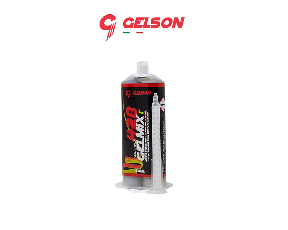 Gelson Gelmix 428 Fast, Nero 30750 50ml - Adesivo bicomponente a base poliuretanica, tissotropico, inodore, che polimerizza a temperatura ambiente. É formulato per l?incollaggio strutturale di un?ampia gamma di materiali.