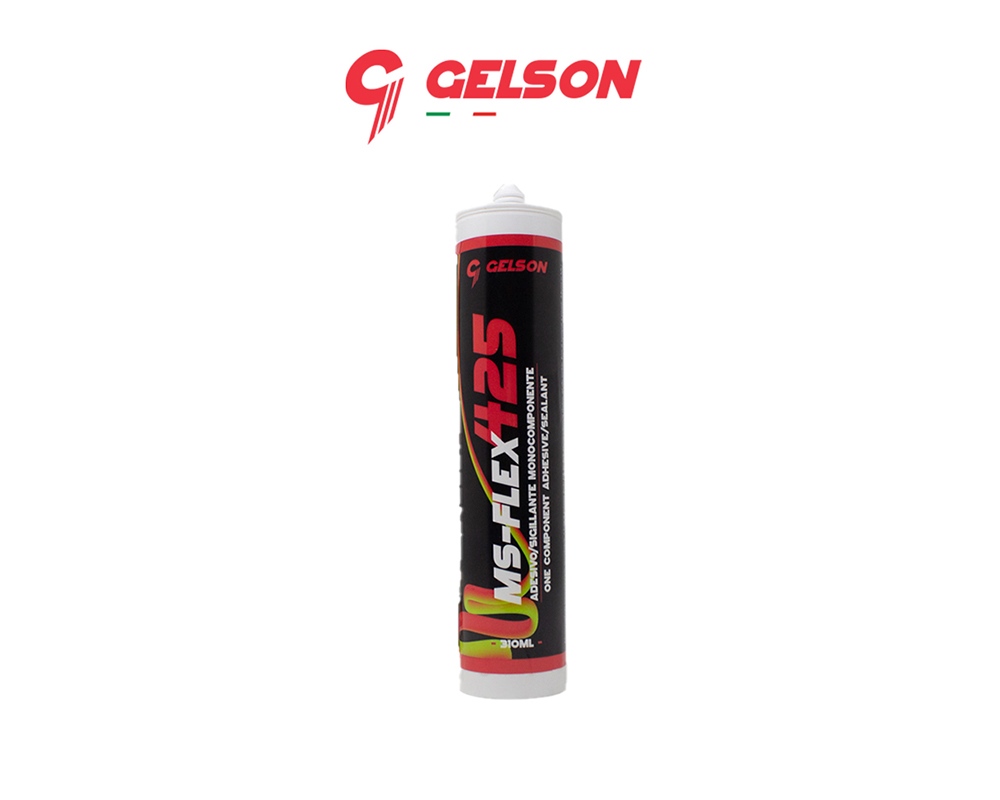 Gelson MS-Flex 425, Bianco 30410 310ml - Adesivo/sigillante monocomponente, igroindurente, a base di polimero ibrido MS, inodore, permanentemente elastico. Privo di isocianati e solventi. Buona resistenza ad intemperie e raggi UV. Non ritira.