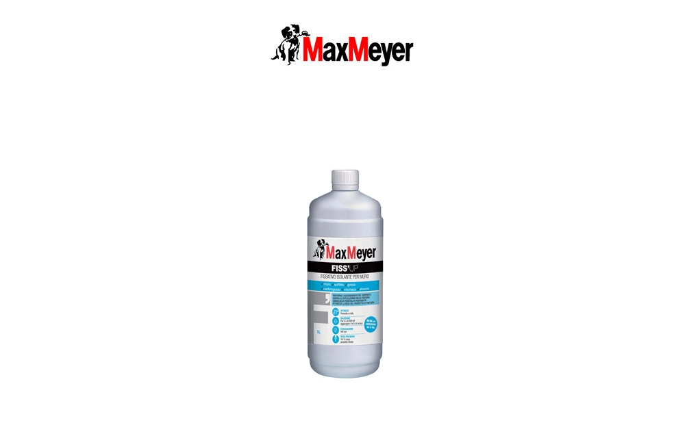 Max Meyer Fiss'Up, 1l - Fissativo isolante per muri interni, penetra profondamente nel supporto esercitando un?azione isolante e consolidante. Agevola l?applicazione e ottimizza la resa del prodotto di finitura. Caratteristiche: -Interno -Trasparente -Ottimo potere isolante -Penetra a fondo nel supporto -Uniforma l?assorbimento del supporto -Agevola l?applicazione del prodotto di finitura -Ottimizza la resa del prodotto di finitura.Resa10-12 mq/l per mano (prodotto diluito)