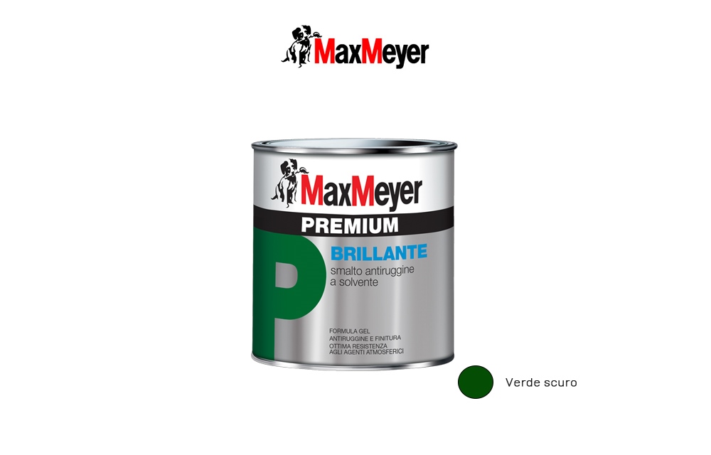 Max Meyer Premium Verde scuro, 750ml - Anticolatura e antigocciolamento. Ottima resistenza agli agenti atmosferici Inodore, Applicabile direttamente su supporti già ossidati. Blocca la ruggine e non necessita di antiruggine. Resa 10/12 mq/l.