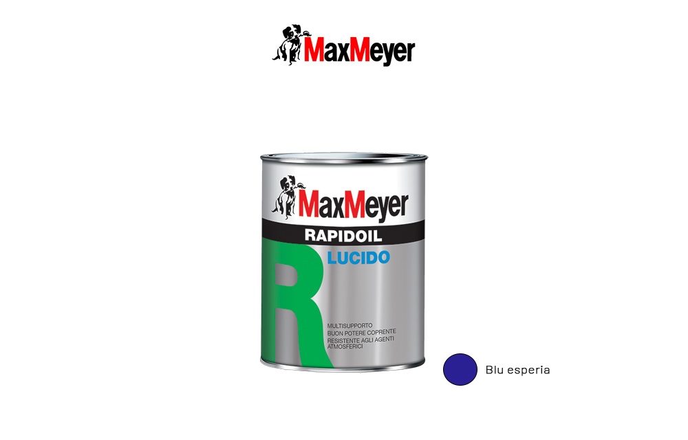 Max Meyer Rapidoil Blu Esperia, 2,5l - Smalto lucido universale a solvente per superfici in ferro e in legno. Caratteristiche: -Resistente agli agenti atmosferici e alla luce -Buon potere coprente -Multisupporto -Pronto all'uso -Per interno ed esterno. Resa 13-16 m2/L per mano.